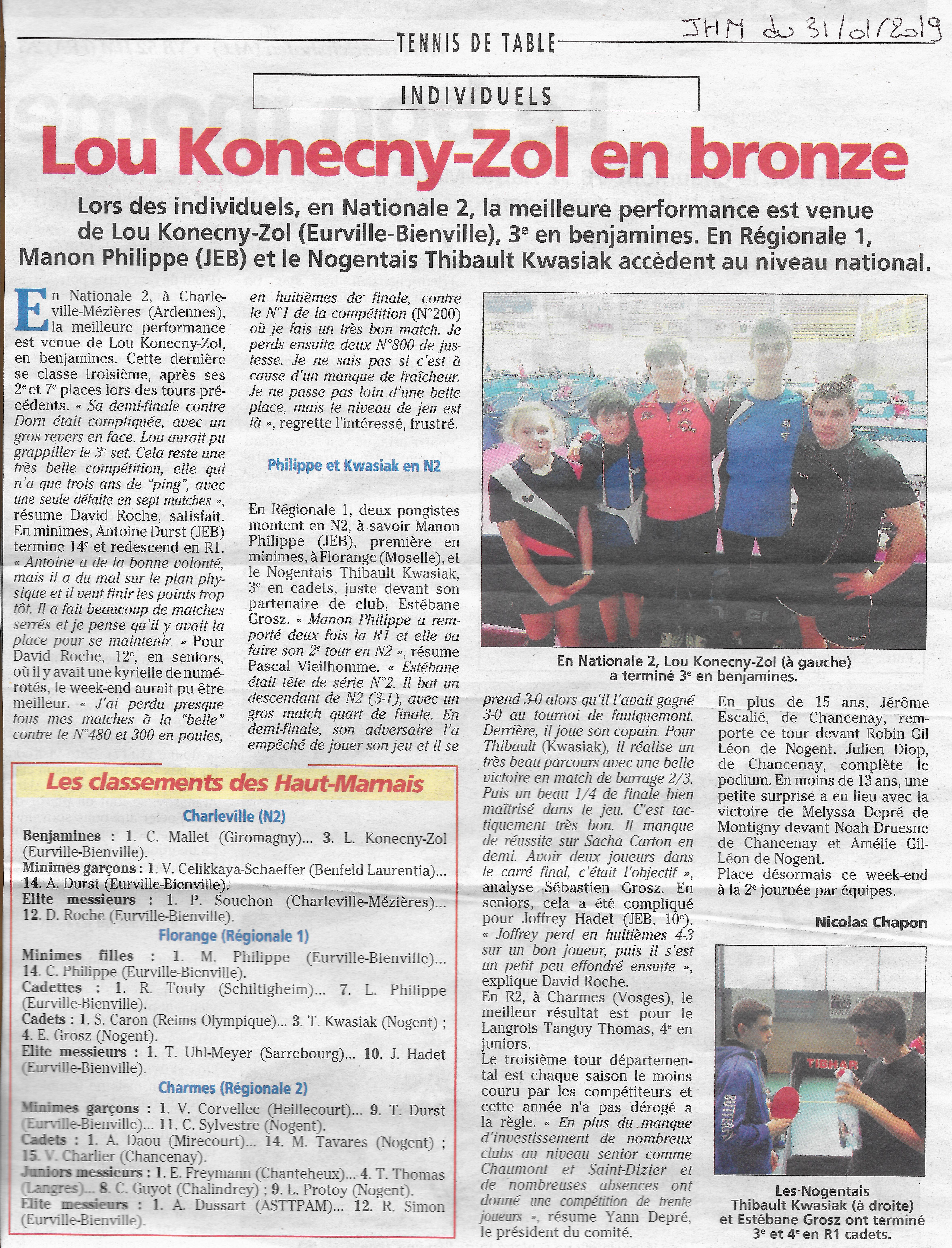 Article extrait du Journal de la Haute Marne du jeudi 31 janvier 2019 concernant le 3ème tour des Individuels